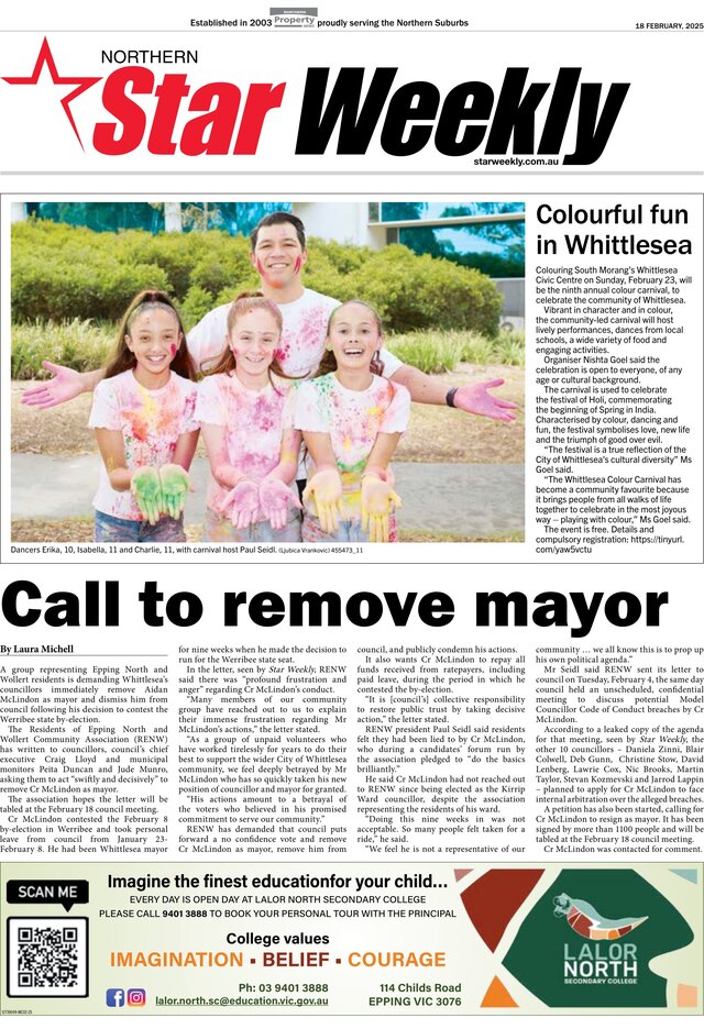 A group representing Epping North and Wollert residents is demanding Whittlesea’s councillors immediately remove Aidan McLindon as mayor and dismiss him from council following his decision to contest the Werribee state by-election.