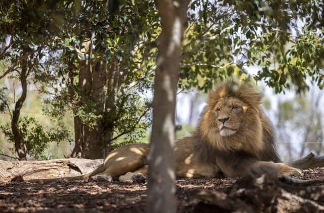 The zoo’s lion pride embrace the heat with frozen meat blocks hung from trees, encouraging jumping, pawing and teamwork.