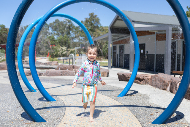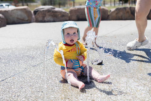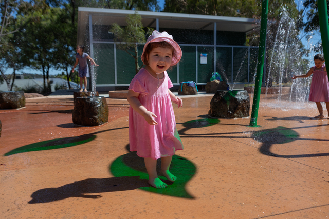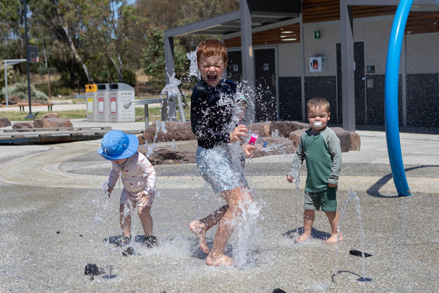 In Doreen, kids cooled off at the new hill top splash park for the first time.